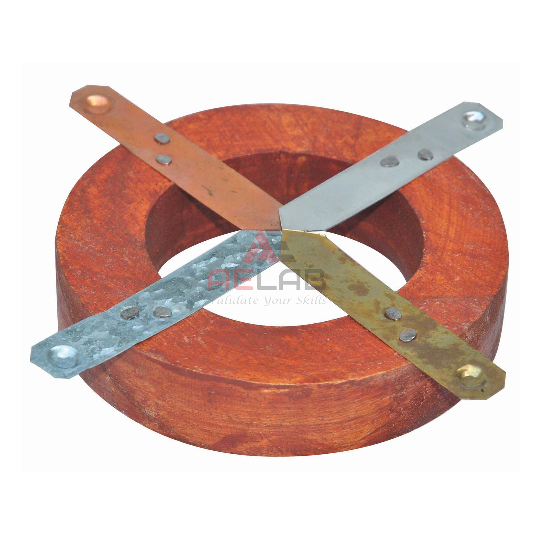 Four metal strips fixed on a wooden ring with front edge melting at the center.