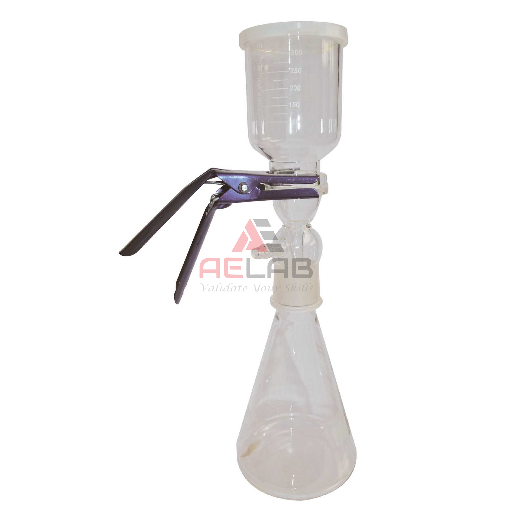 Assembly with stopper for membrane, Funnel, Flask and Cup, Standard joint fitting, membrane diameter 47 mm, funnel capacity 300 ml, flask capacity 1000 ml.