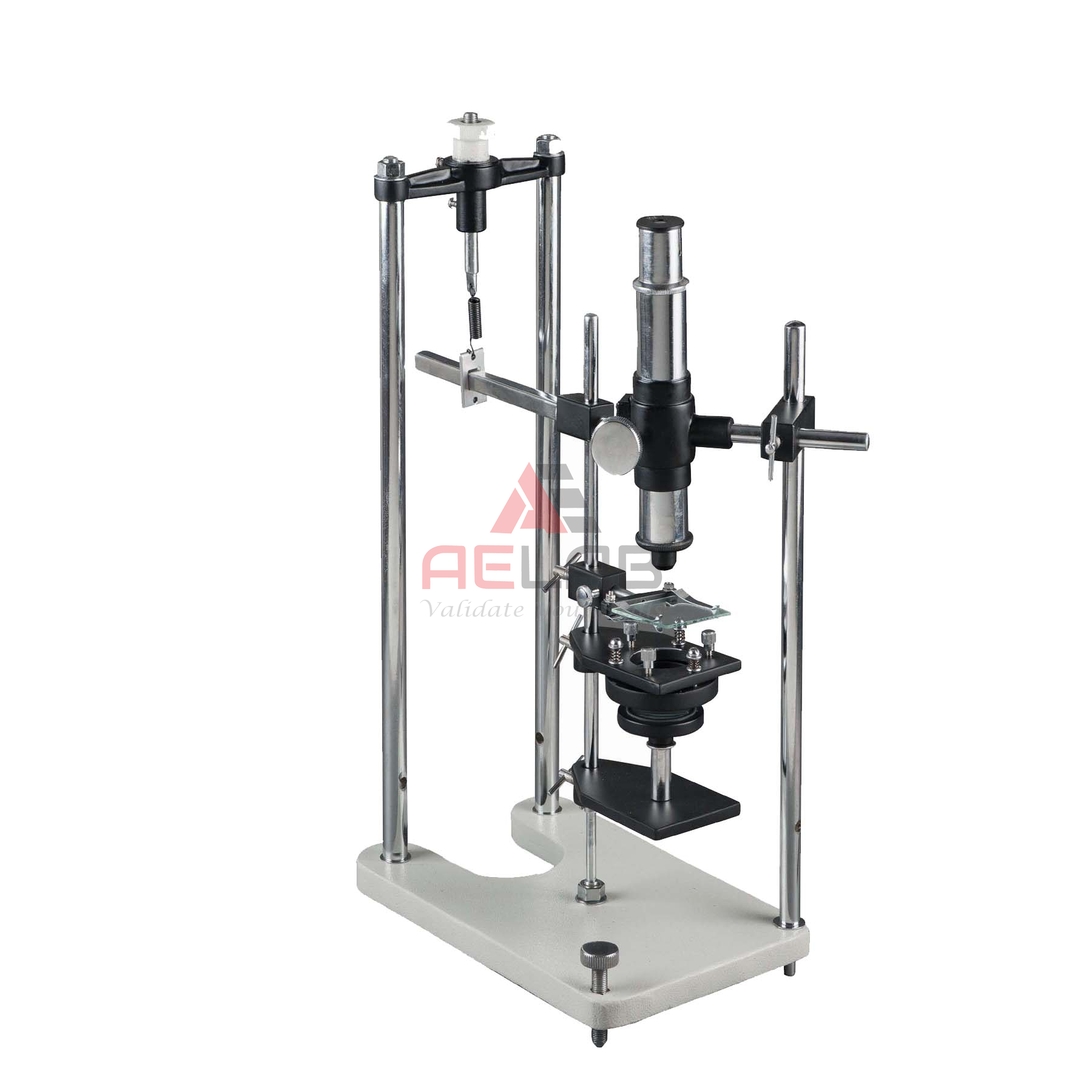 a time. To the right is a microscope fitted with a micrometer eye piece scale