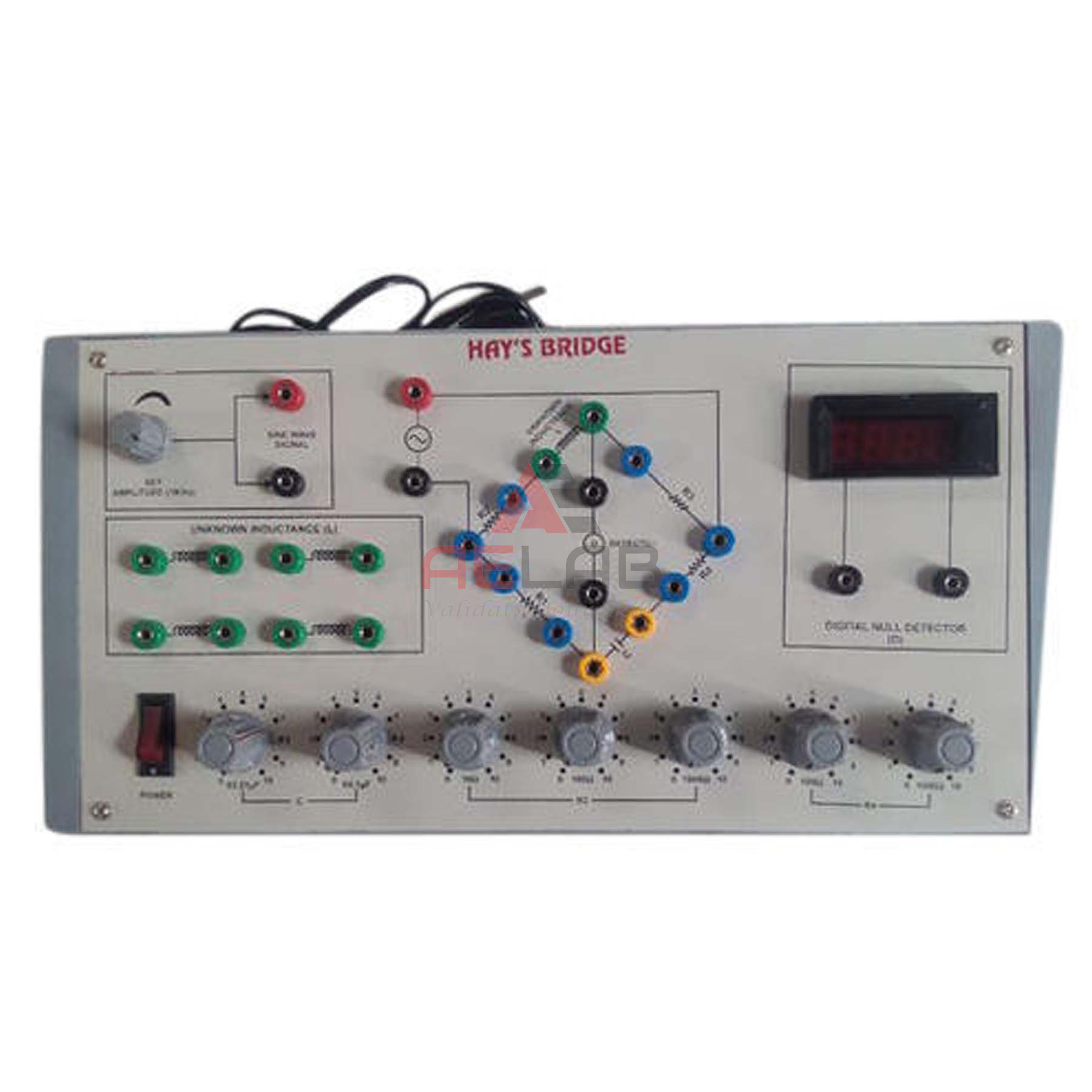 Hay’s bridge is used to measure the unknown value of Inductance. The instrument has following inbuilt parts fitted in a Teak wood case.