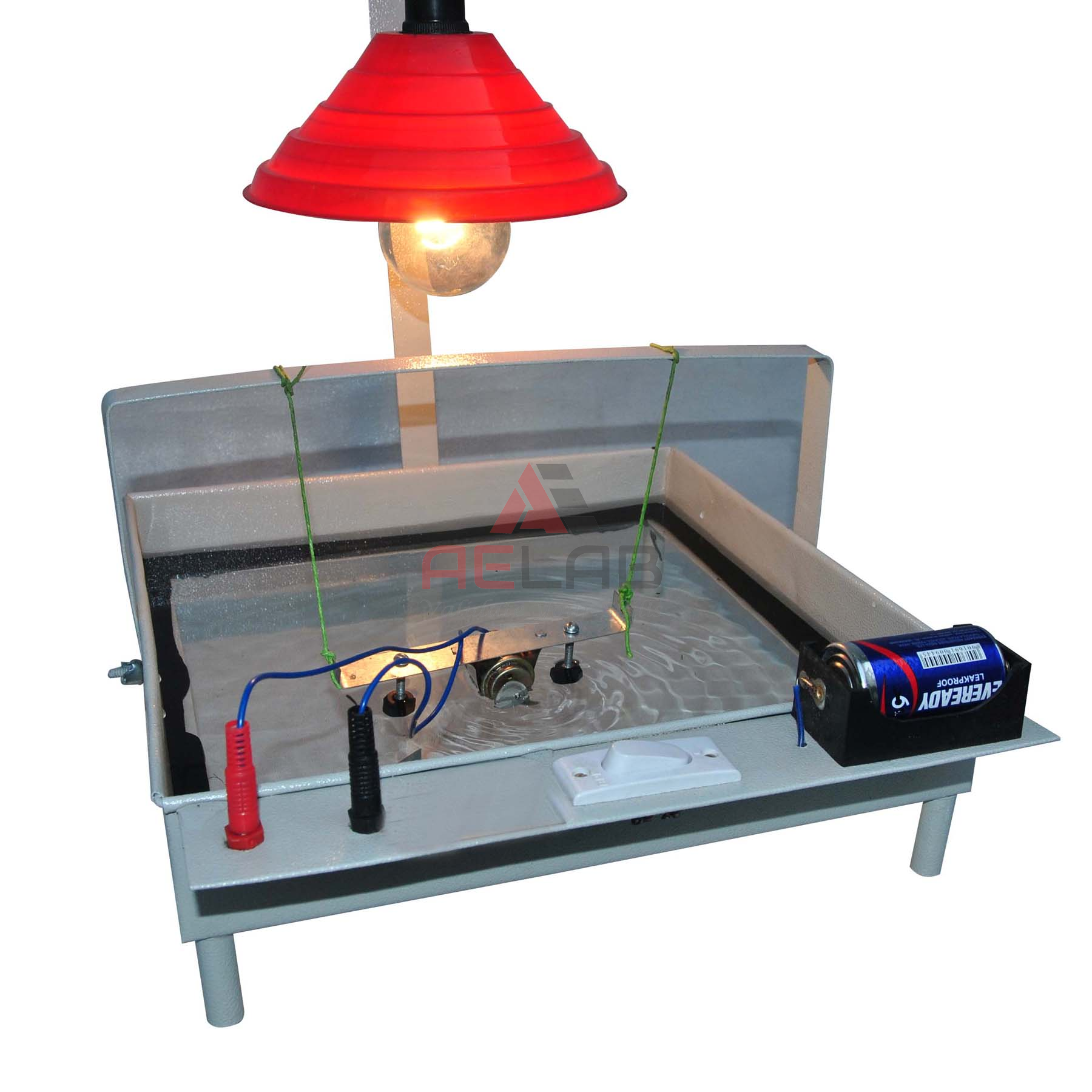 To study propagation, reflection, diffraction and interference of waves, consists of an enameled M.S sheet frame with four adjustable legs, complete with all the accessories and working instructions size of tank is 30 x 30 cm.