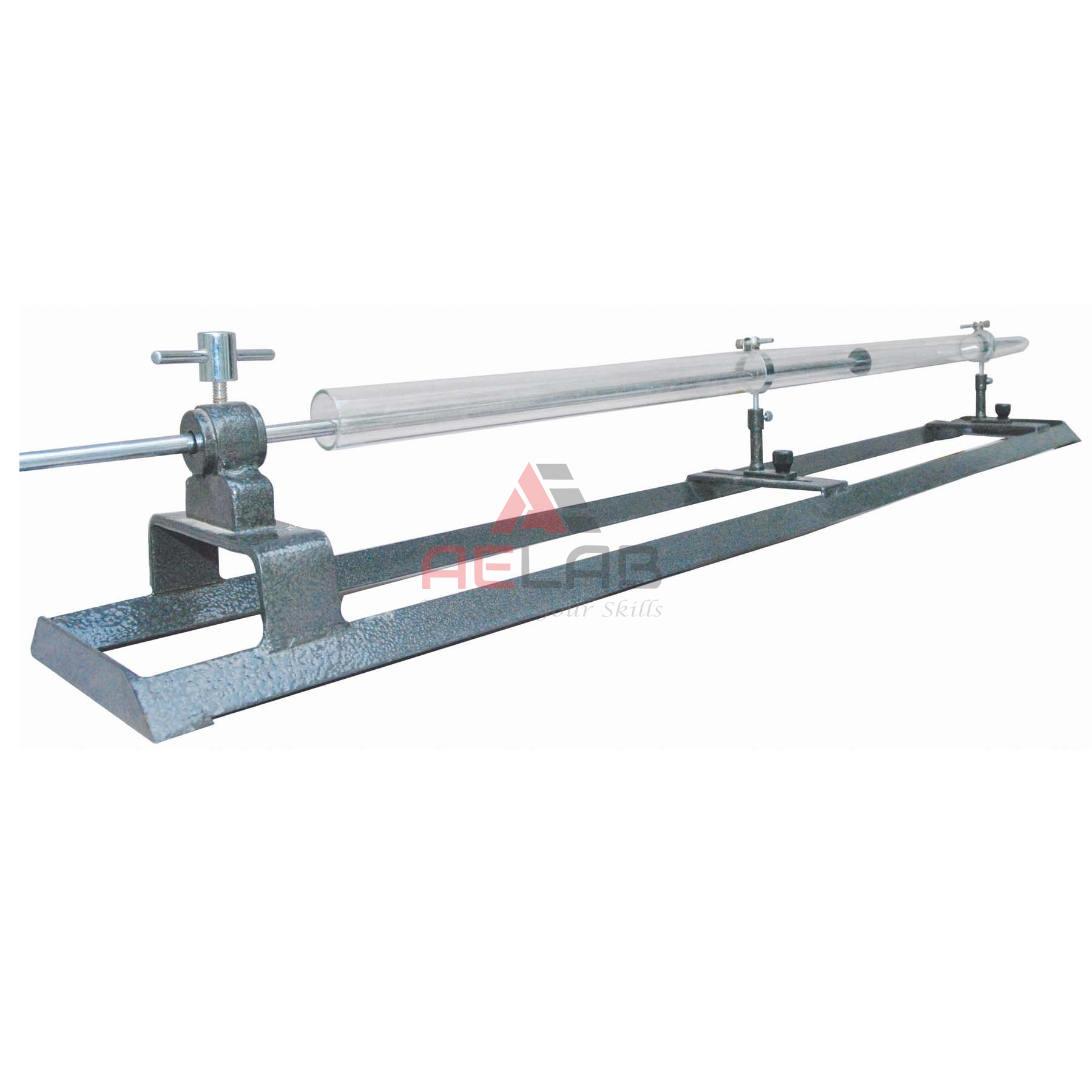 To determine the velocity if sound it consists of a vertical wooden plank which carries a wooden scale at one side, a brass tube on another and a transparent tube in between. The lower end of brass tube carries a two way nozzle. The vertical end of the nozzle is connected to the transparent tube and the horizontal end is connected to a reservoir through rubber tubing the wooden plank is supported on a heavy base with leveling screws supplied without rubber tubing.