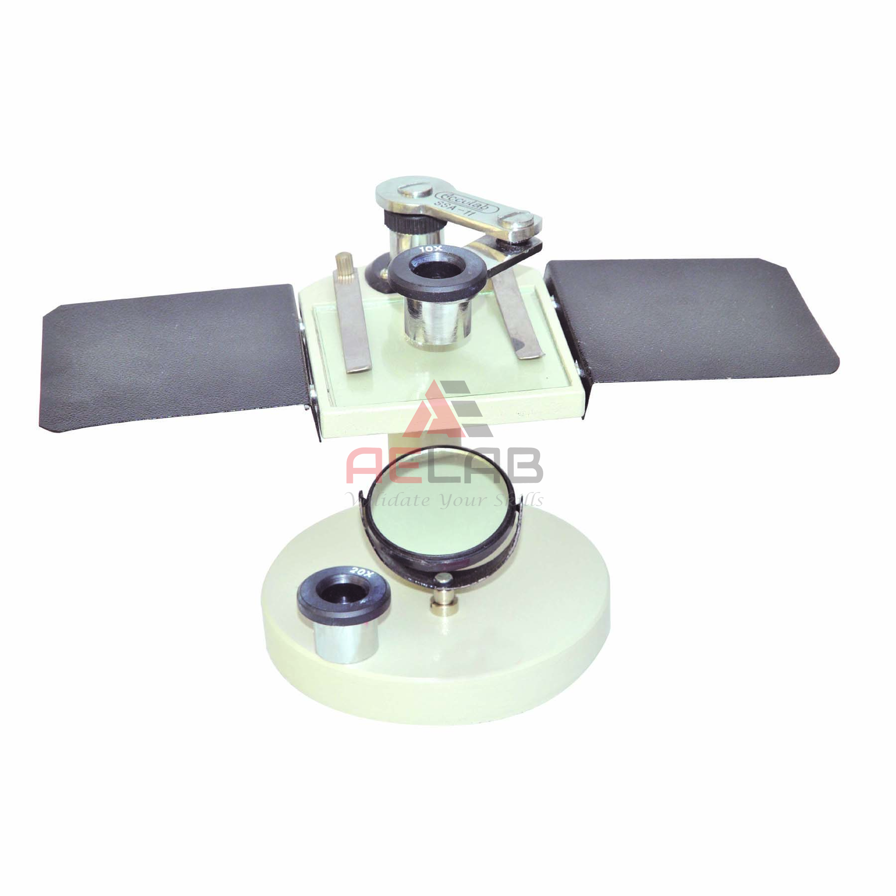 It provided with round cast iron heavy base, sensitive focusing by rack & pinion, fitted with all brass parts like pipe, knobs with two eye piece 10x20x, packed in thick plywood box.